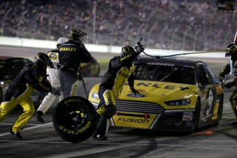 Penske Racing’s Brad Keselowski had led much of Duel 2 before a pit road speeding penalty and a flat tyre put paid to his chances.