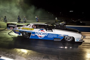Two heavy hitters in Terry Burnett and Chris Matheson came up against each other. Burnett was eliminated through brushing the wall under ANDRA rules, but post race it became obvious there was an issue for Matheson. The multiple ANDRA Champion was taken to hospital for treatment after a sparkplug displaced at the beginning of his run. Matheson is reported to be suffering no major effects as a result of the incident.