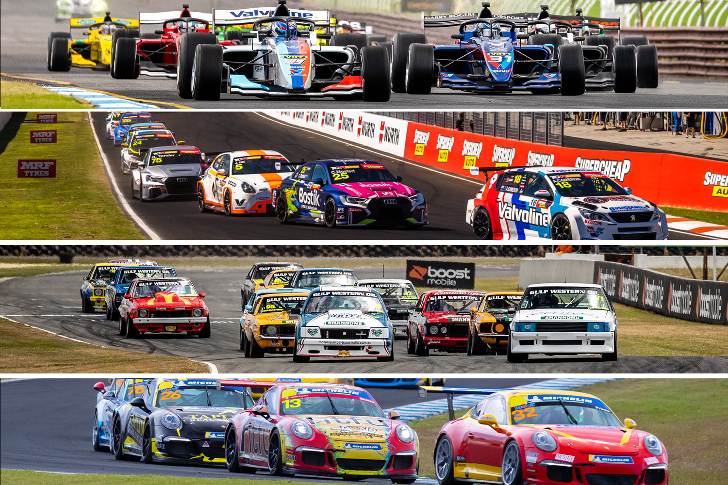 Other categories to feature on the Motorsport Australia Championships card include Porsche Michelin Sprint Challenge, the Australian Prototype Series, RA Cup Australia, MRF Tyres Australian Production Car Series, Aussie Racing Cars, and Precision National Sports Sedan Series.
