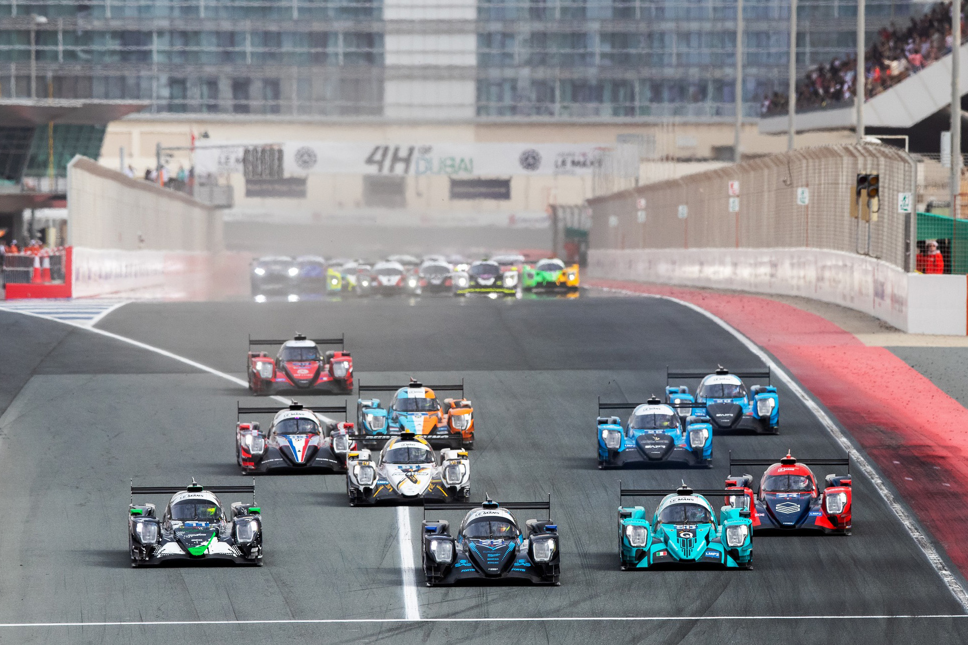 The start of Race 4 of the 2025 Asian Le Mans Series at the Dubai Autodrome.