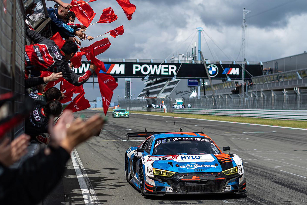 The race-winning #15 Audi R8 LMS GT3 Evo II was shared by Kelvin van der Linde, Dries Vanthoor, Frederic Vervisch and Robin Frijns.