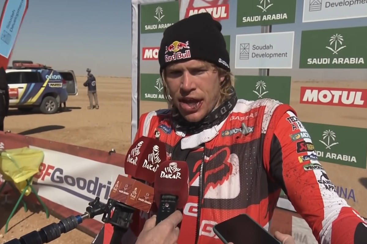 GasGas Factory Racing’s Daniel Sanders faceplanted his navigation screen on his way to the 17th-fastest time on Stage 4 of the Dakar Rally.