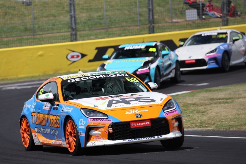 Geoghegan won the Round 4 opener of Toyota GAZOO Racing Australia GR Cup, ahead of pole sitter Hayden Hume with Ben Gomersall third.