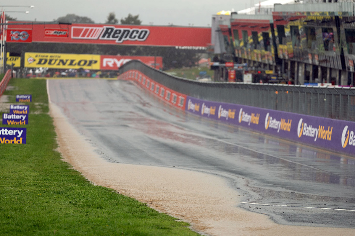 A deluge of rain hit Mount Panorama on Saturday afternoon, forcing the cancellation of the preceding Porsche Paynter Dixon Carrera Cup Australia and Dunlop Super2 Series races.