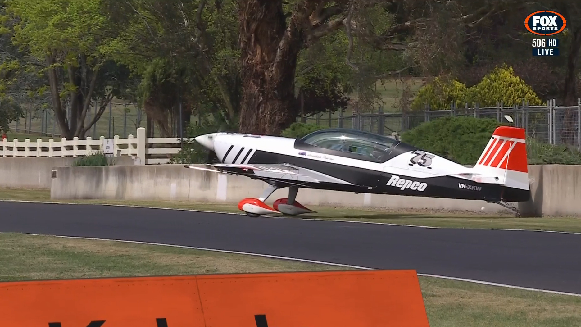 As part of pre-race festivities, the iconic trophy was delivered by plane. It landed on the straight before swivelling around and hitting the wall.