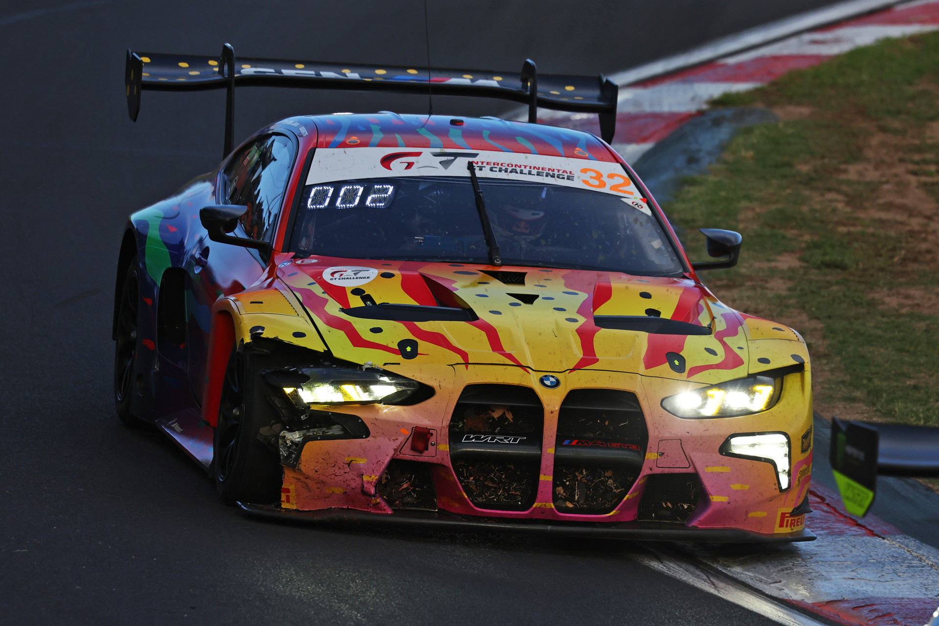 The right front corner of the car was damaged, though the team elected not to pit under the half-hour-long Safety Car that followed.