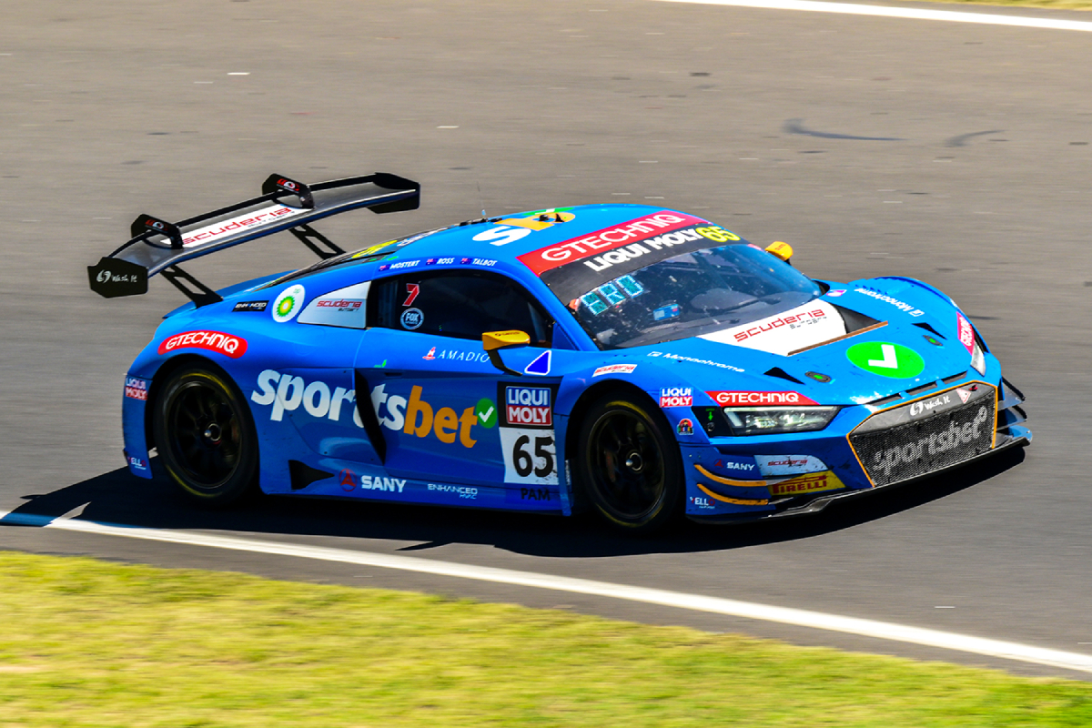 The Audi R8 LMS GT3 evo II of Mostert, Fraser Ross, and Liam Talbot picked up the class win despite the former incurring a drive-through and the latter glancing the wall at Griffins Bend.