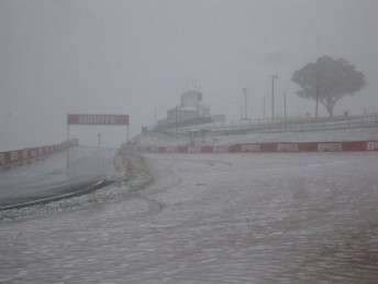 Just seven days after the ‘Great Race’ Mount Panorama looked more like Thredbo in the Snowy Mountains!