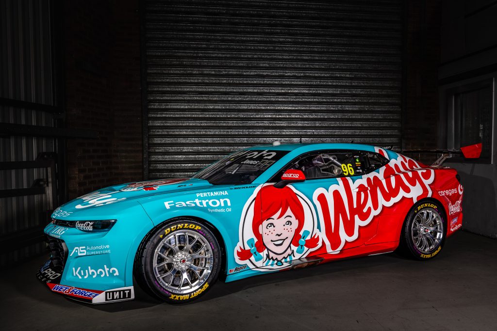 While Pizza Hut branding normally takes pride of place on the #96 Chevrolet Camaro, that space has been handed over to Wendy’s, which recently became part of the same corporate family in Australia.