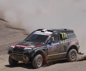 Giniel De Villiers (VW) was fourth and is still in with a shot for a place on the final podium. MINI’s Guerlain Chicherit had a challenging day when he got stuck in a rut on what seemed a rather safe manoeuvre. His X-Raid team-mate, Leal Dos Santos, lent help to extract him from this sticky situation, but Chicherit and Périn struggled up to the stage finish, trailing their team leader by 30 minutes.