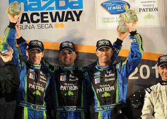 Aussie sportscar ace David Brabham has guided Patrón Highcroft Racing took its second American Le Mans Series victory in a row with a brilliant last to first win with team-mates Simon Pagenaud and Marino Franchitti at the six hour event at Mazda Raceway Laguna Seca today.