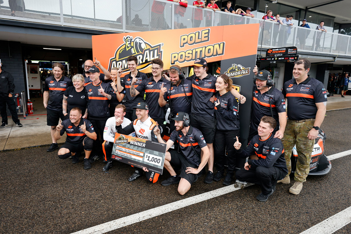 Erebus Motorsport’s Brodie Kostecki has taken a maiden Repco Supercars Championship pole position in a rain-affected Top 10 Shootout ahead of Race 2 at Sydney Motorsport Park.