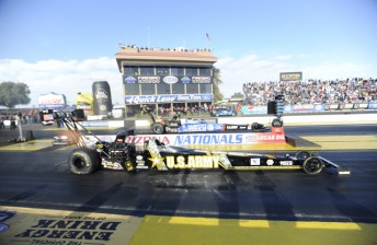 The Australian entry in the Full Throttle Top Fuel Championship – the Rapisarda Racing entry of Cory McClenathan – again qualified for the event – equalling his effort of last weekend in 13th qualifying position. He drew Winternationals winner, Spencer Massey – who duly disposed of the veteran racer in a 3.769 to 3.964 race.