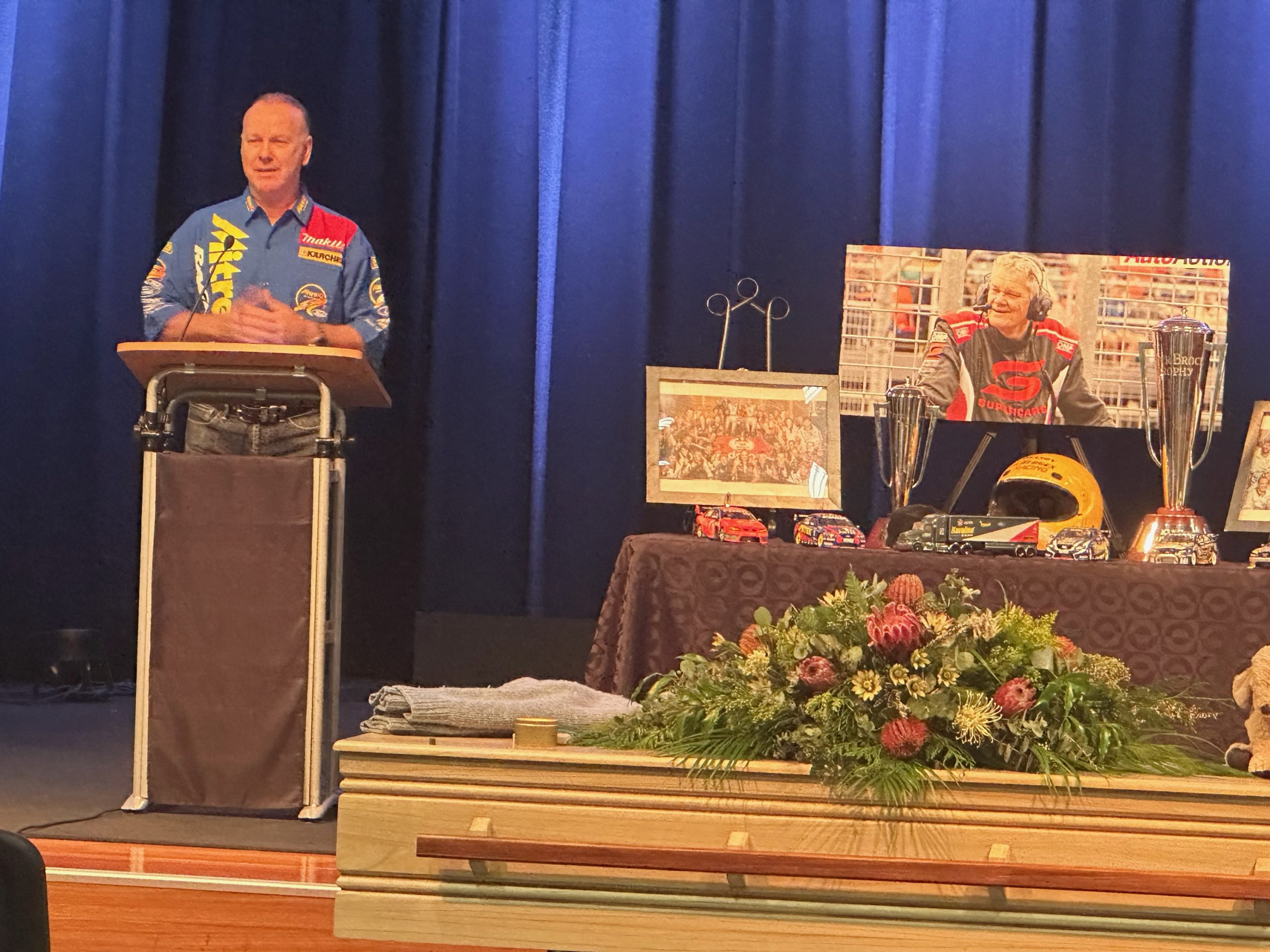 Instead of race strategies and technical jargon, today’s focus was Little, as Larkham gave a fitting and enlightening eulogy at the veteran engineer’s funeral service on the Gold Coast.