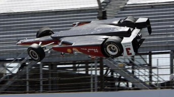After being the pace setter the day prior, the three-time Indy 500 winner lost control in the middle of the turn. The car spun backwards into the wall and then got air underneath it and flipped before landing on its wheels.