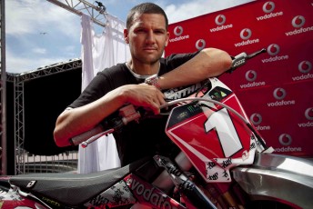 The 28-year-old was joined by V8 legend Mark Skaife at Darling Harbour to pull the covers off his race bike, showcasing a livery that draws heavily on the unique chrome and rocket red livery of the TeamVodafone V8s – the cars that took an historic one-two at Mount Panorama last weekend.
