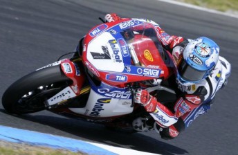 Biaggi picked-off riders at will, passing everyone except the defending World Superbike Champion. Biaggi heads the championship on 45 points.