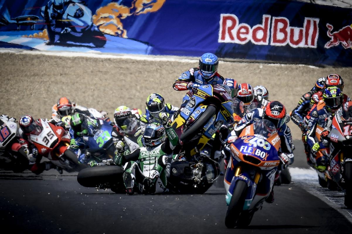 Dimas Ekky Pratama initially looked to have fared worst, as it was his own body which slid into Marco Bezzecchi’s bike and took the Italian down after hitting Gardner’s bike.