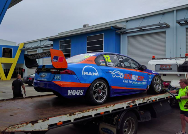 Heavily damaged after a late-race hit from Garth Tander yesterday, the car was immediately dispatched to the workshop of chassis specialists Pace Innovations in nearby Yatala.