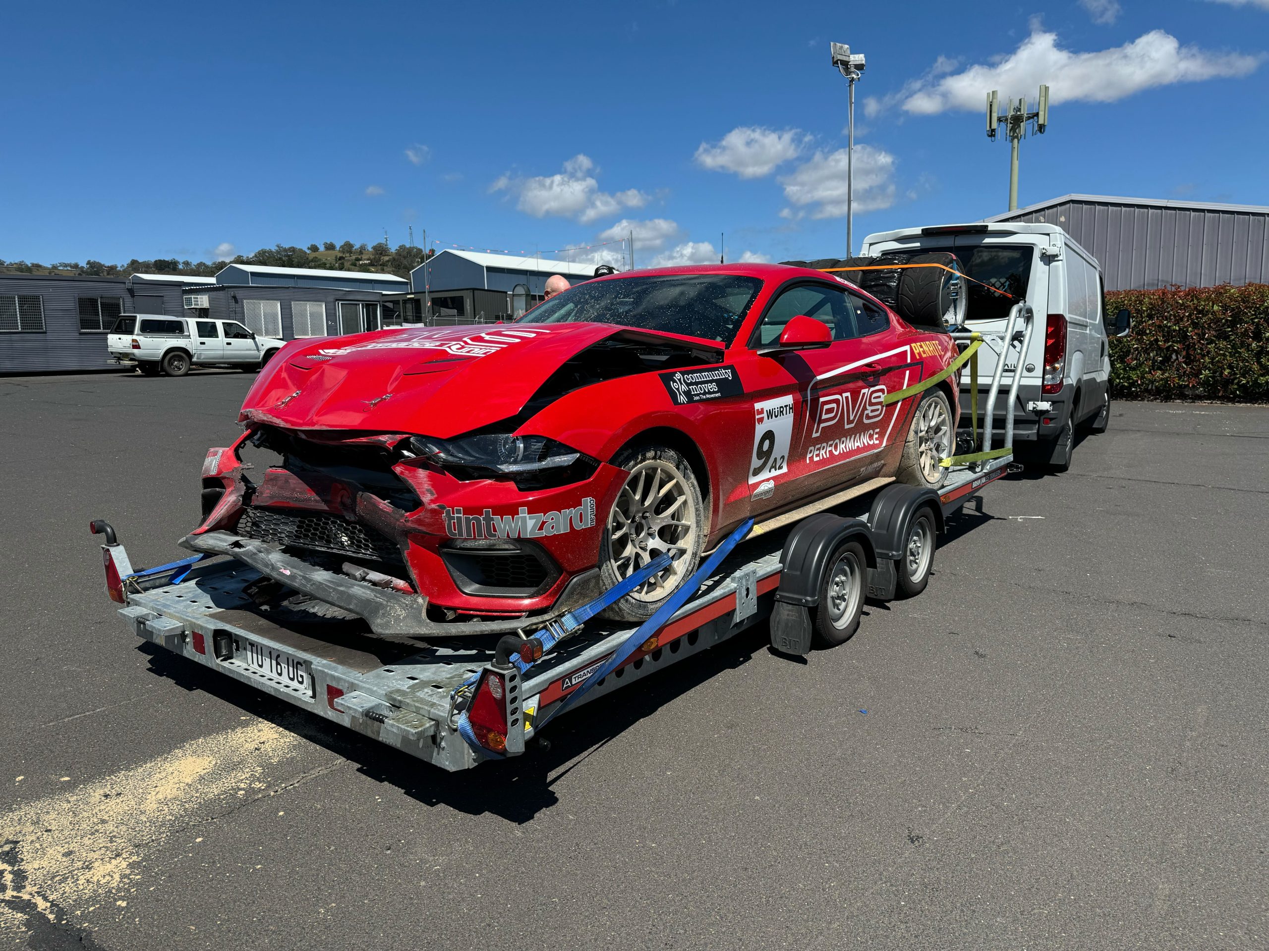 Early reports suggest there was oil on the track, with Morrell’s Mustang hitting the wall and sustaining serious front-end damage.