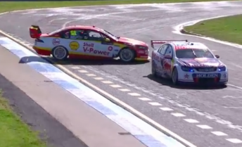 The reigning Supercars champion made contact with the rear of Fabian Coulthard, which resulted in a spin for the Shell V-Power Racing Ford Falcon in Saturday’s final practice session.