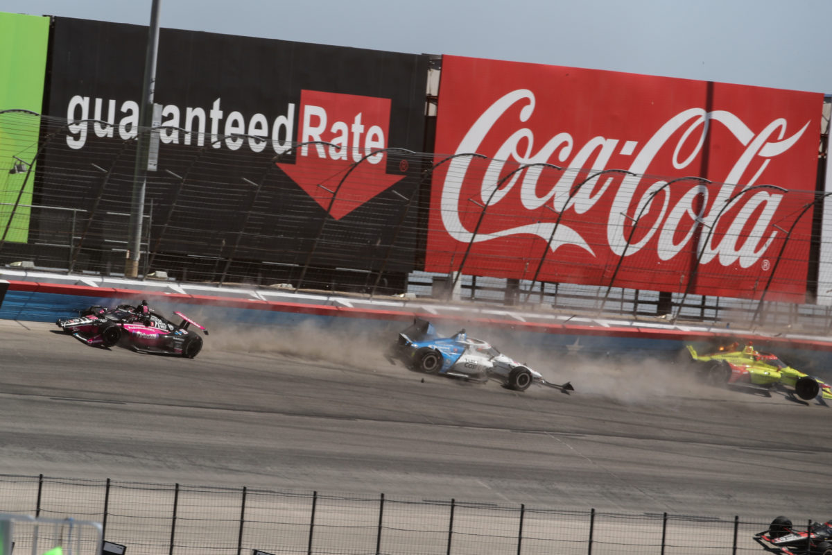 They made contact which caused Rahal (Rahal Letterman Lanigan Racing) to also hit Helio Castroneves (Meyer Shank Racing), with all three then crunching the wall in an incident which triggered the fourth Caution of the race.