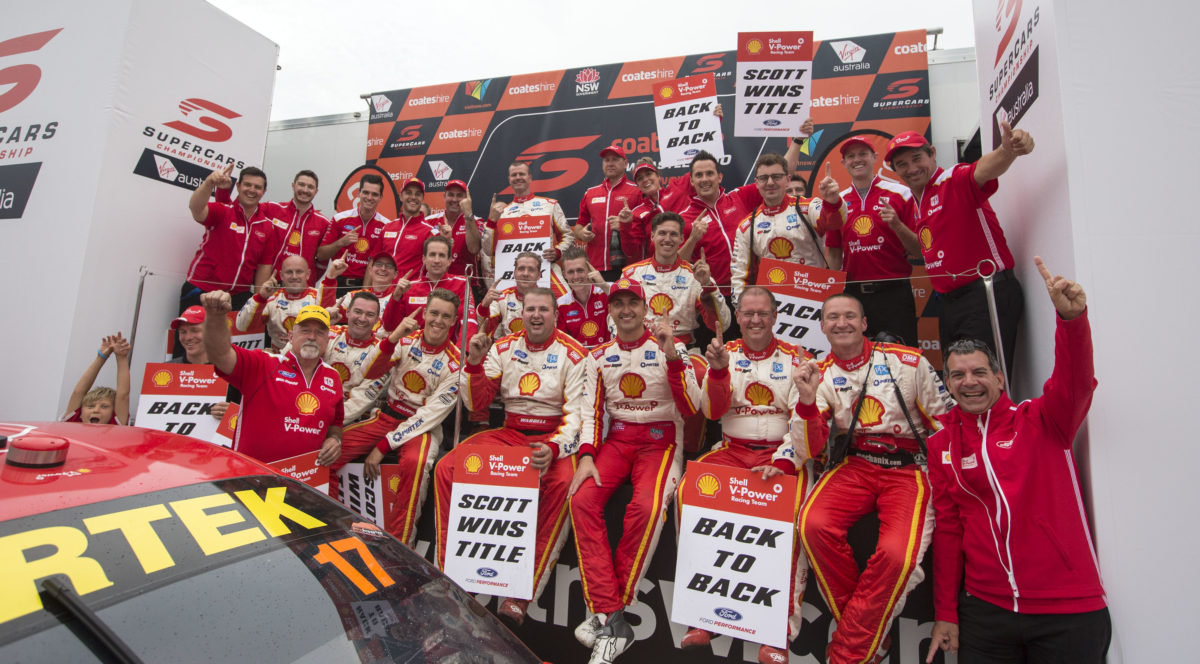 While Triple Eight extended that streak with a pair of wins at Newcastle, podiums for McLaughlin and Coulthard in Race 31 followed by a fourth and second respectively on Sunday was enough to secure the teams’ championship.
