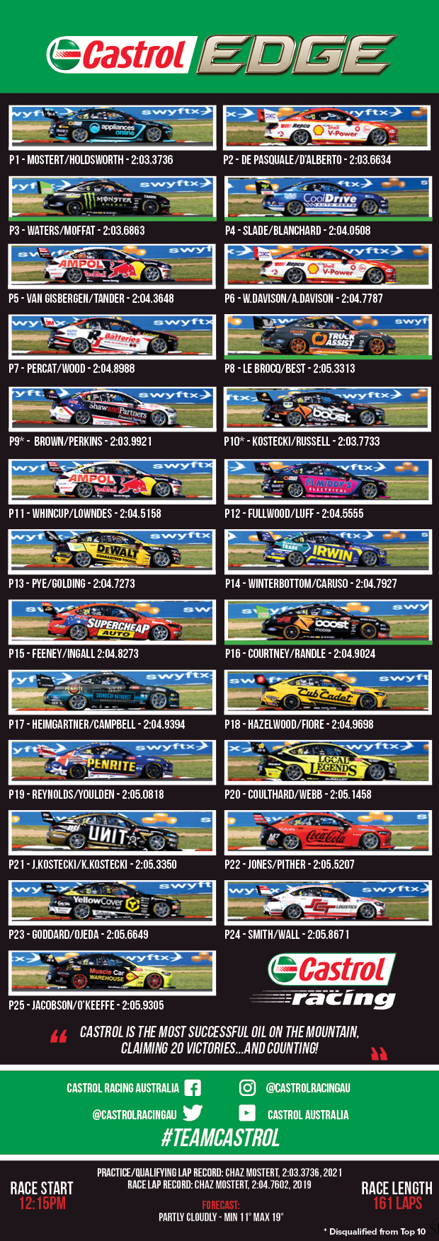 Download your own copy of the 2021 Castrol Bathurst 1000 Grid Card for today’s Great Race.