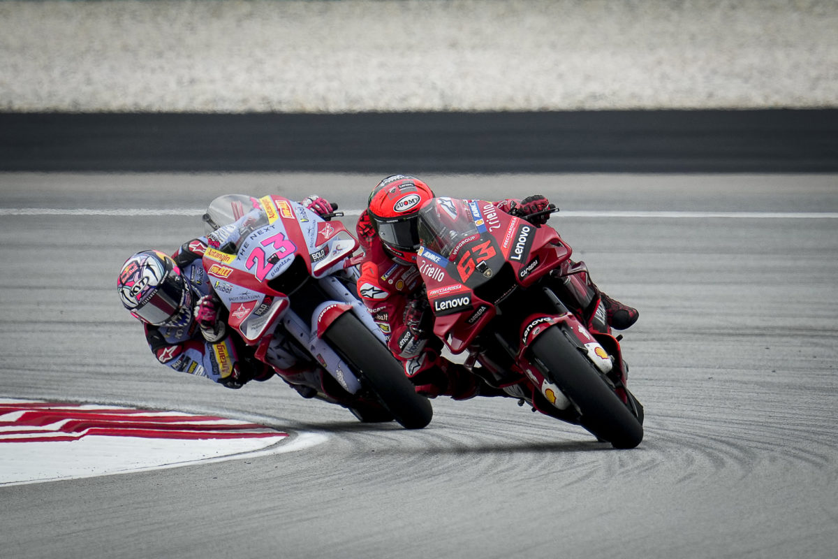 Bastianini passed future team-mate ‘Pecco’ on Lap 11 around the Sepang International Circuit and held the lead for three laps before the championship leader hit back.
