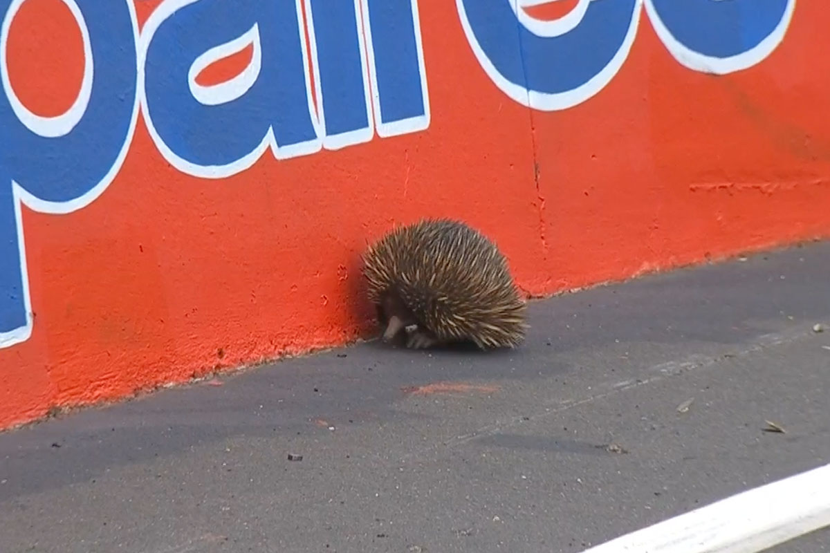 There were a number of close calls, particularly for Brad Jones Racing’s Macauley Jones and Matt Stone Racing’s Kurt Kostecki, as drivers swerved to avoid hitting the echidna.