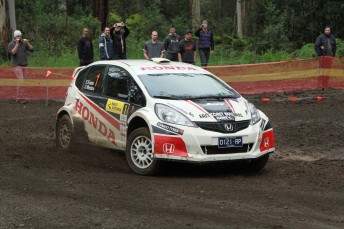 Brendan Reeves, in the rallyschool.com.au Mazda2, pressured Evans all weekend. Reeves was within striking distance heading into this afternoon’s closing forest stages but struck a rear puncture with eight kilometres to run on Limberlost stage.