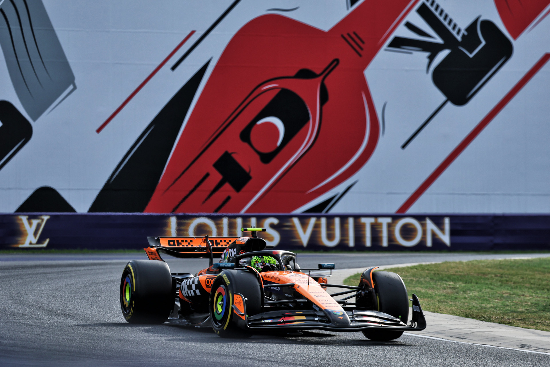 Both drivers flirted with the limits — Piastri ran wide at Turn 7, while Norris had a wild moment at the final corner and later locked up exiting the pits, narrowly avoiding contact with his teammate at Turn 1.