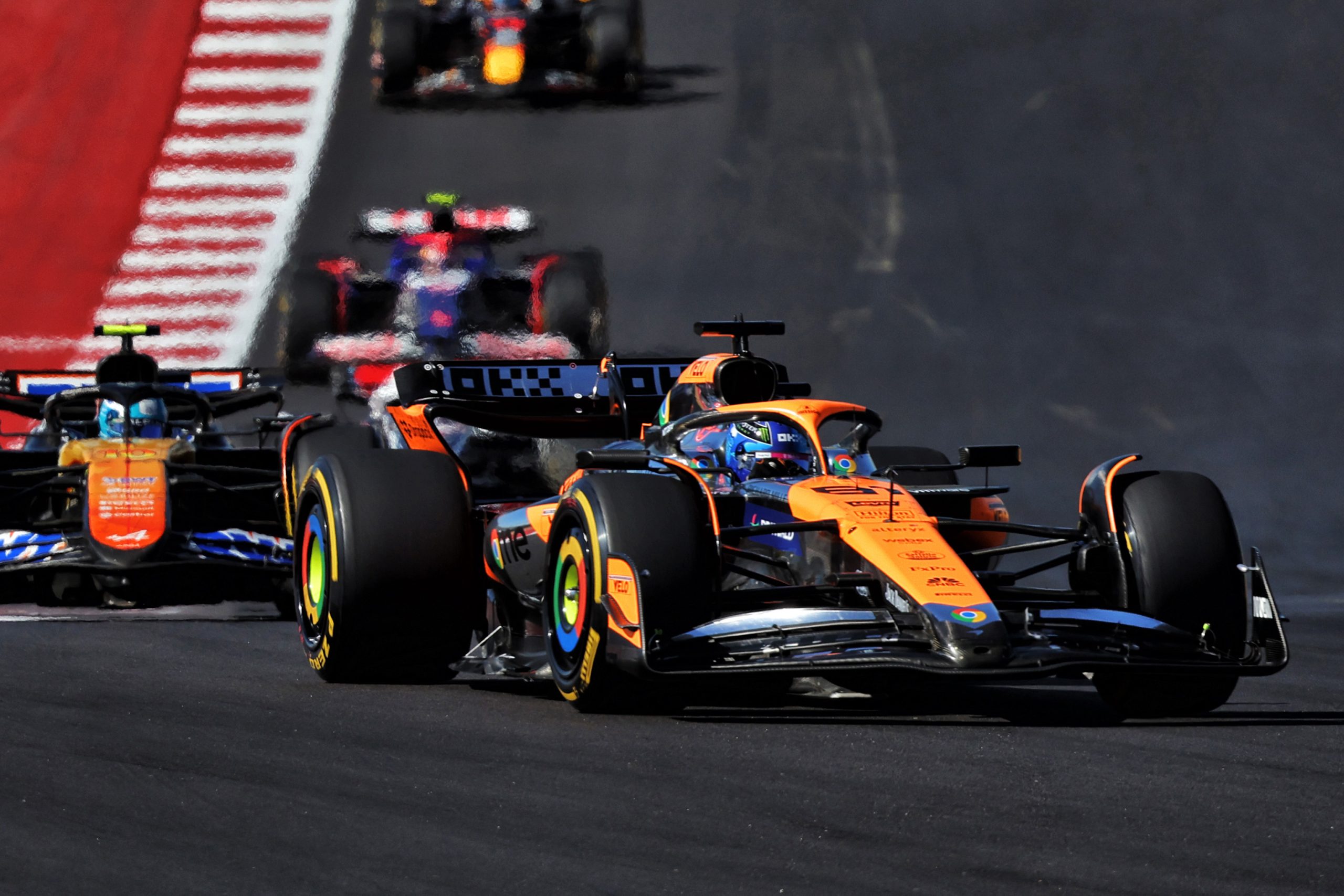 Norris dropped to fourth ahead of Piastri and held station until the first round of pit stops.