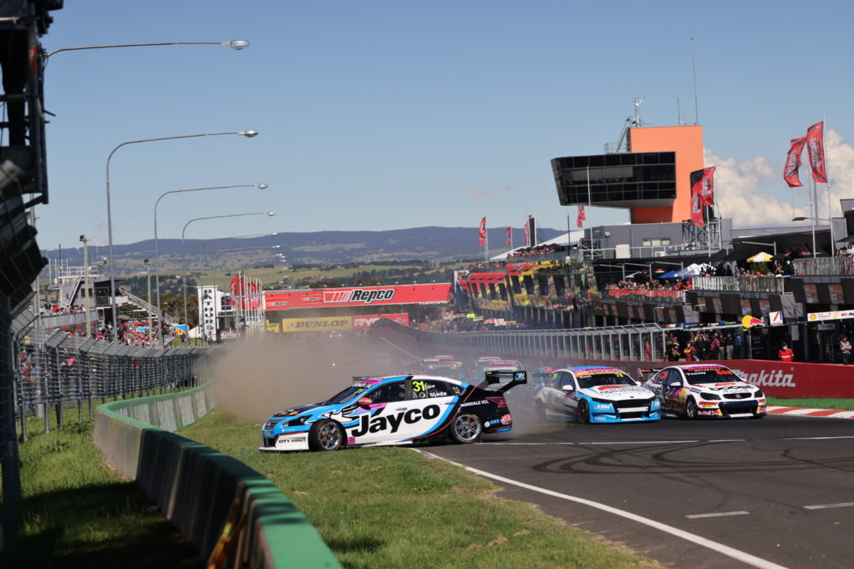 The latter stopped in the Hell Corner gravel trap with broken steering while Ojeda pressed on, but only as far as McPhillamy Park, where he relented with a destroyed right-rear tyre.