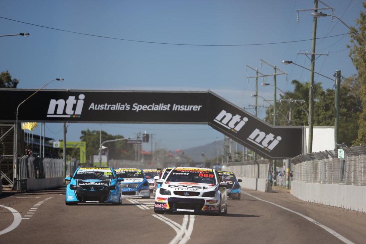 Feeney (#888 VF Commodore) led the field away from pole as Blanchard (#88 VF Commodore) launched from the second row into second position.