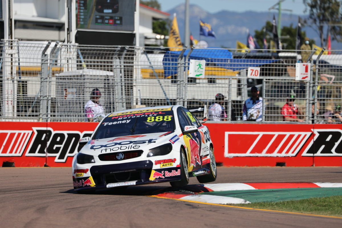 Feeney (#888 VF Commodore) was quick out of the box, beating his practice benchmark by almost three tenths with a 1:14.3441s on his first flyer, while team-mate Angelo Mouzouris (#6 VF Commodore) took up second on a 1:14.7415s.