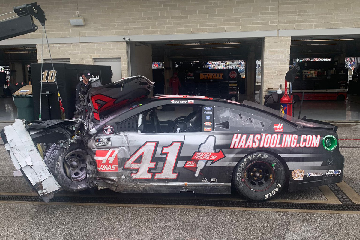 Custer was fired into the barriers as a result and his #41 Stewart-Haas Mustang burst into flames.