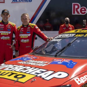 Images from Supercheap Auto and Triple Eight Race Engineering’s Bathurst 1000 wildcard livery launch with Russell Ingall and Broc Feeney.