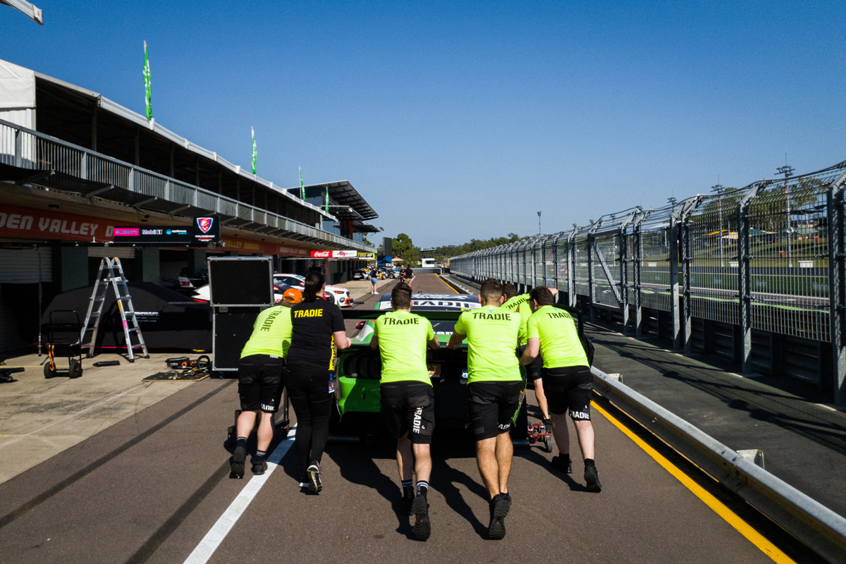 A trio of Erebus Supercars in Hidden Valley pit lane