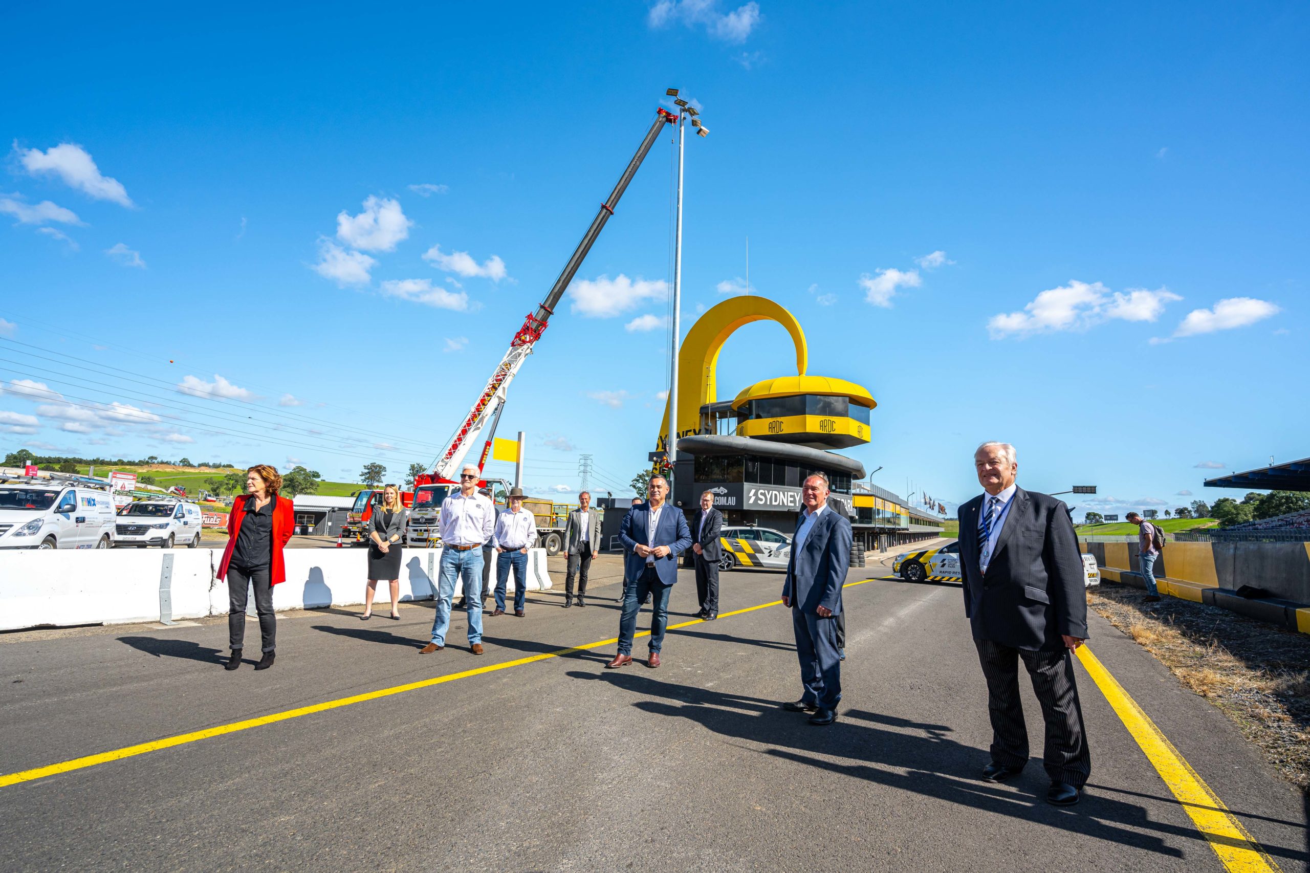 The first permanent light fixture at Sydney Motorsport Park has been erected ahead of this year’s Sydney SuperNight.