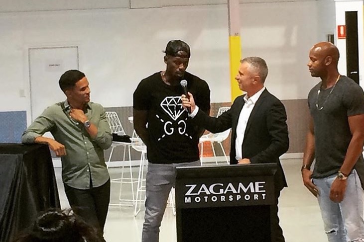 Launching Zagame Motorsport with (L to R) John Steffensen, Usain Bolt, and Asafa Powell