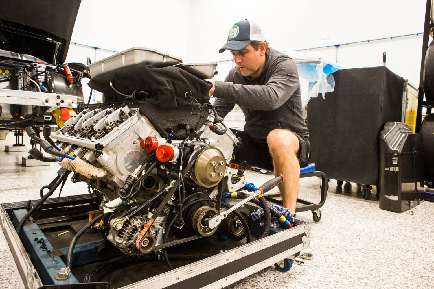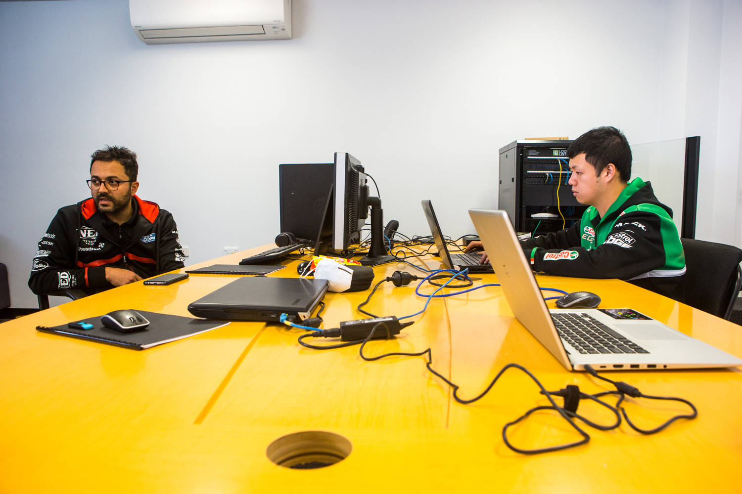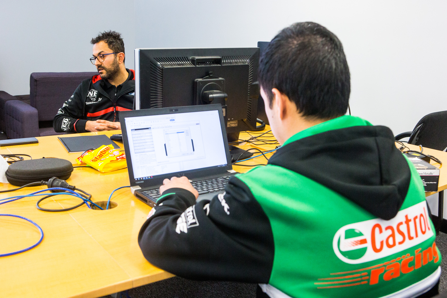 Will Brown with engineer Andrew Edwards at the Christchurch Super440