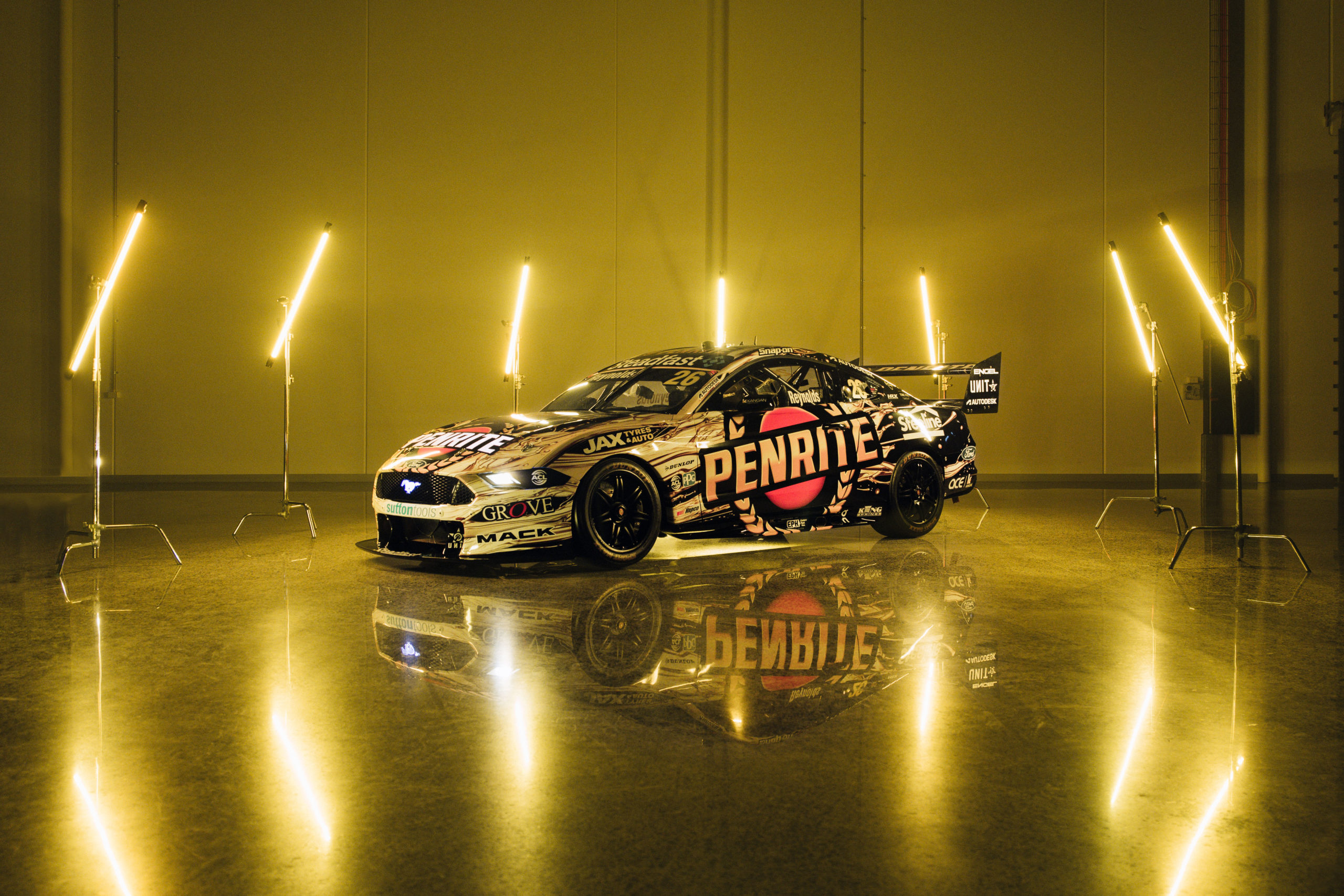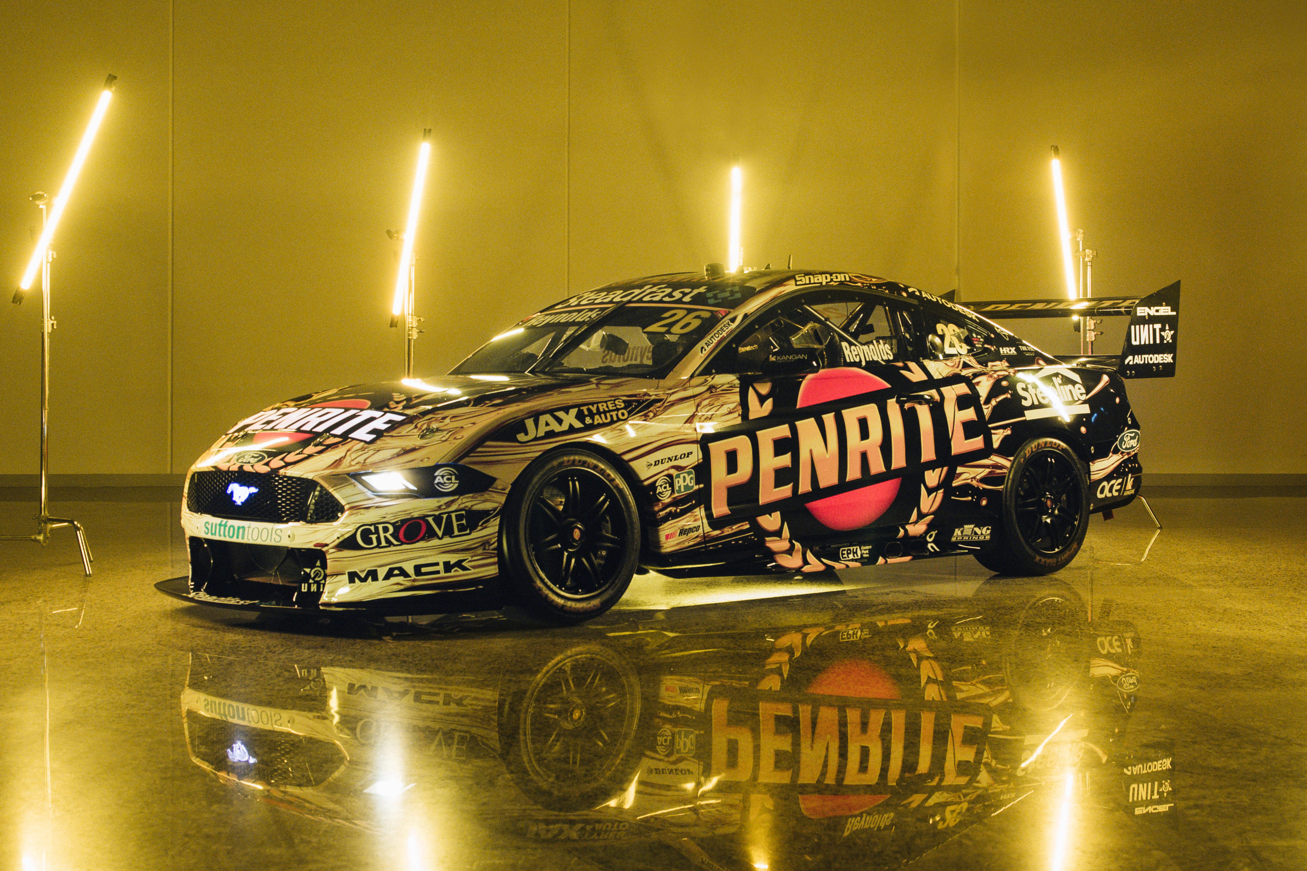 Take a closer look at the Penrite Racing #26 Ford Mustang sporting a new livery for the Sydney Motorsport Park quadruple-header.