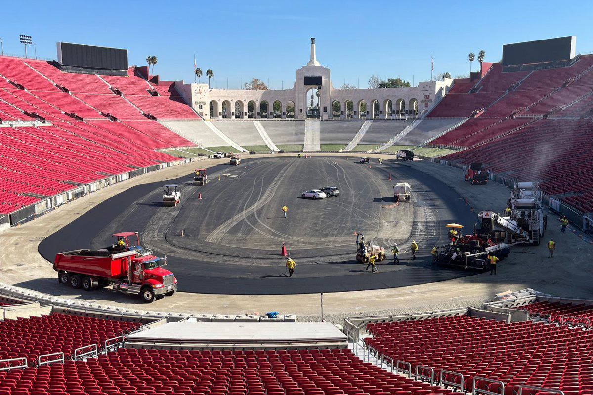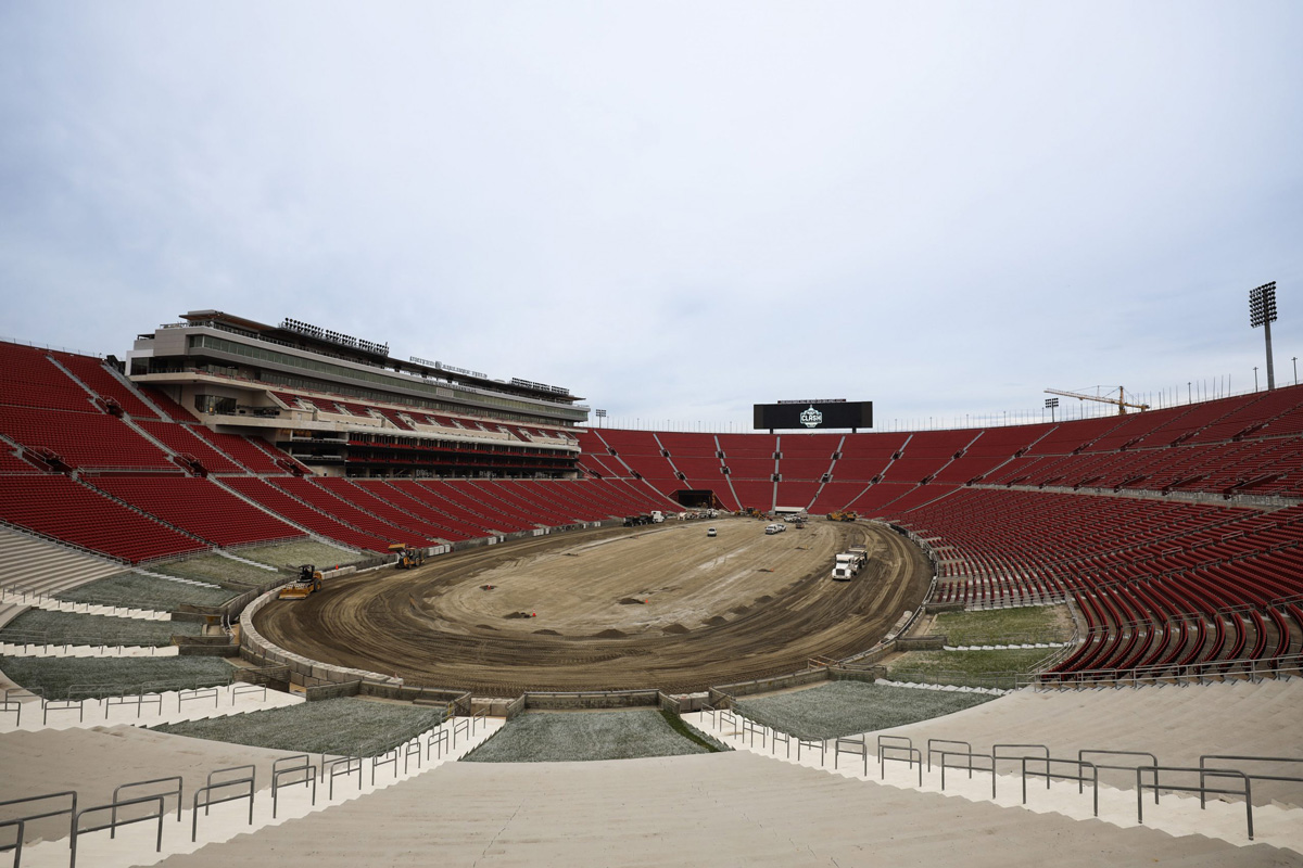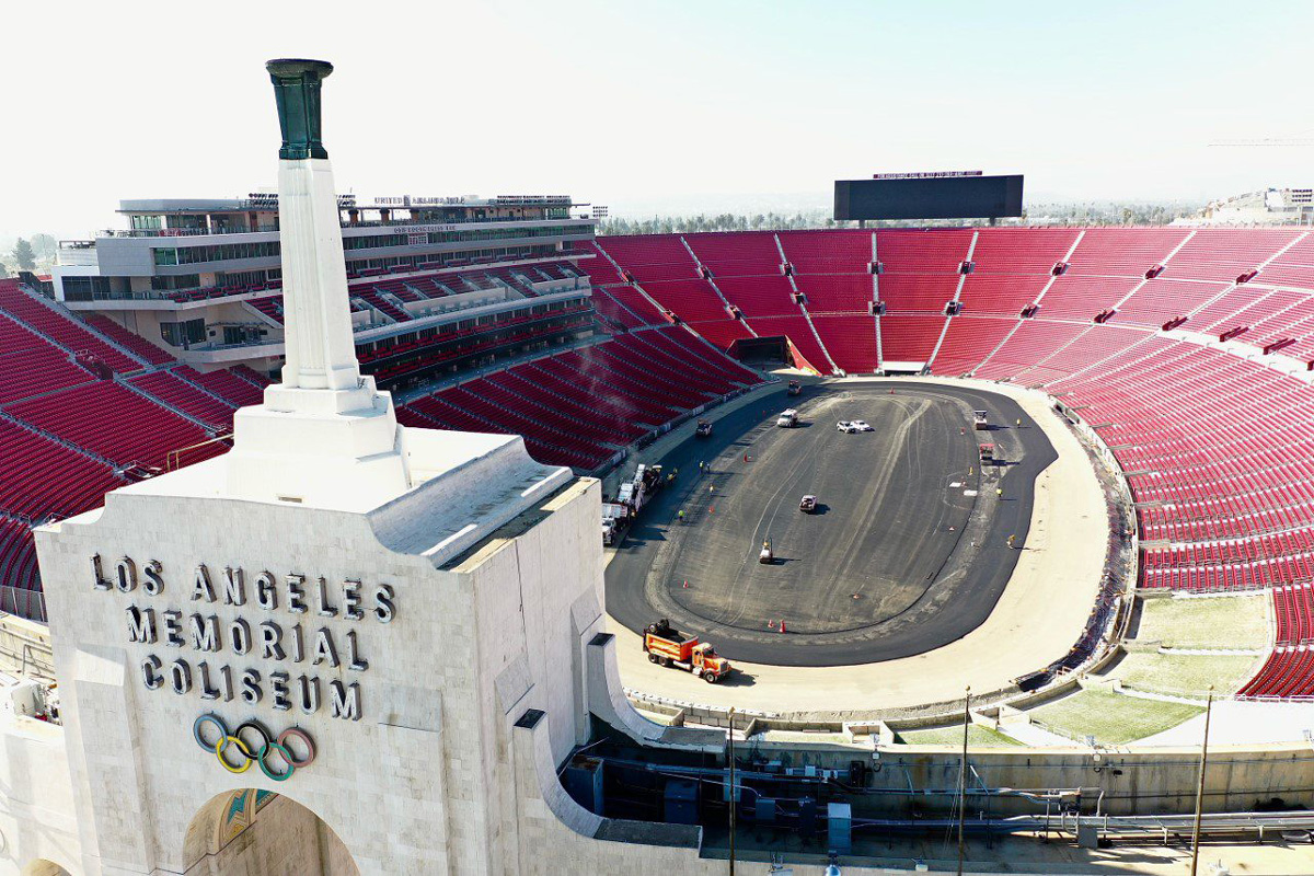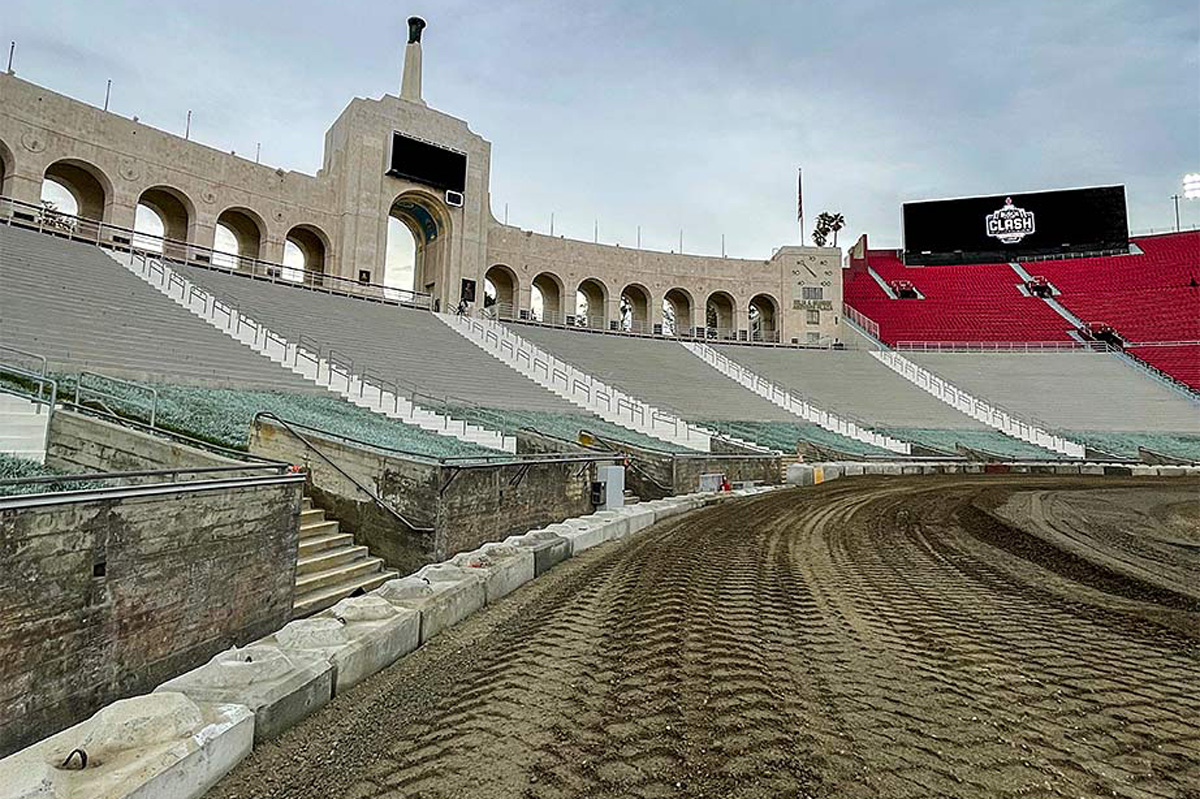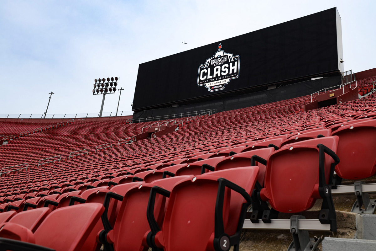 Check out progress on the quarter-mile oval at the Los Angeles Memorial Coliseum, ahead of the NASCAR Cup Series’ 2022 Busch Light Clash at the Coliseum on February 6 (local time).