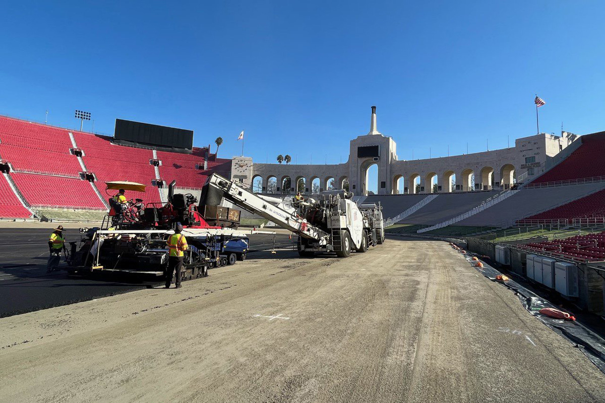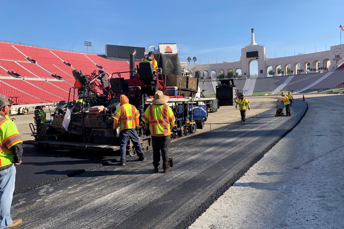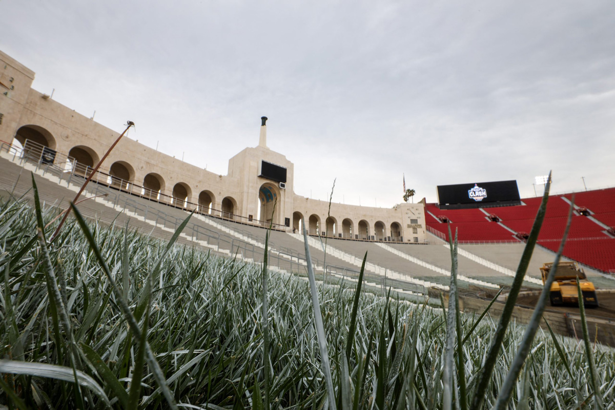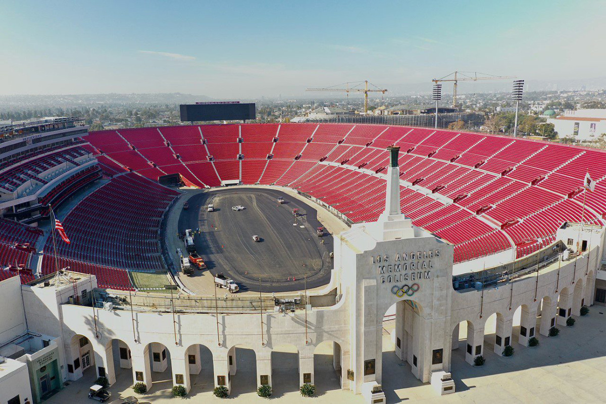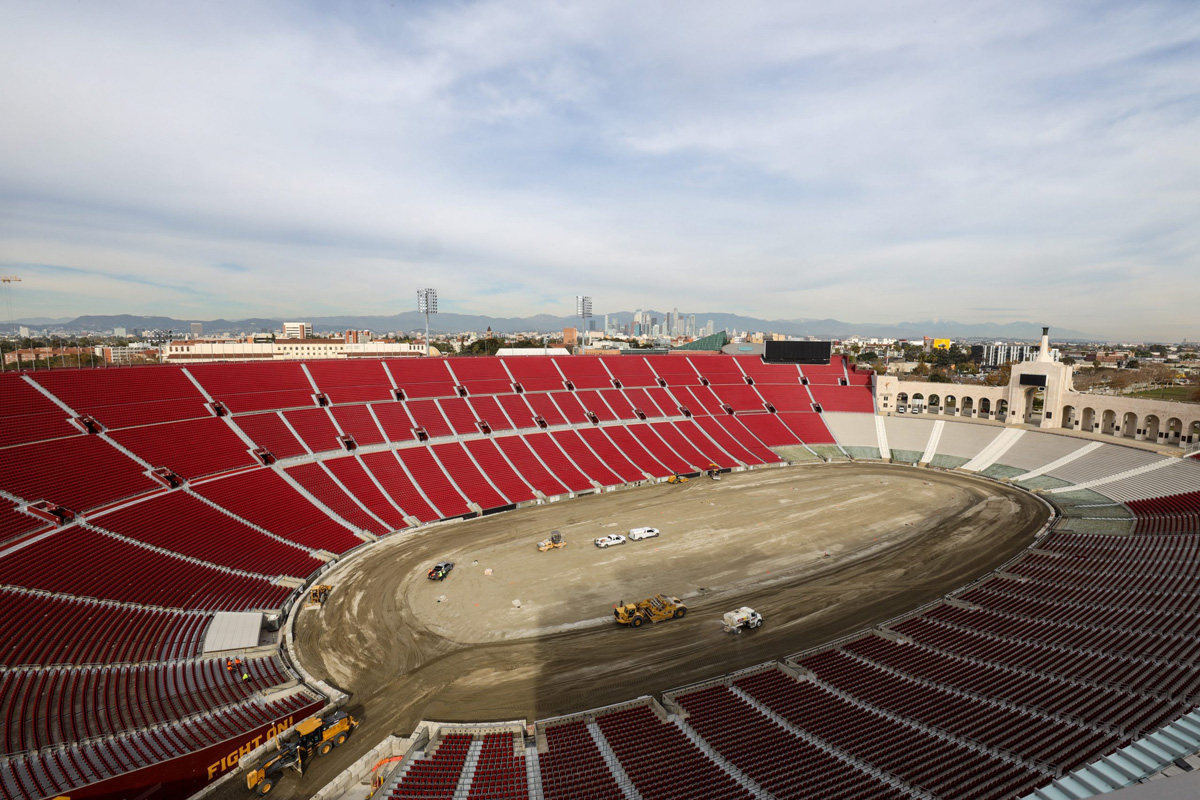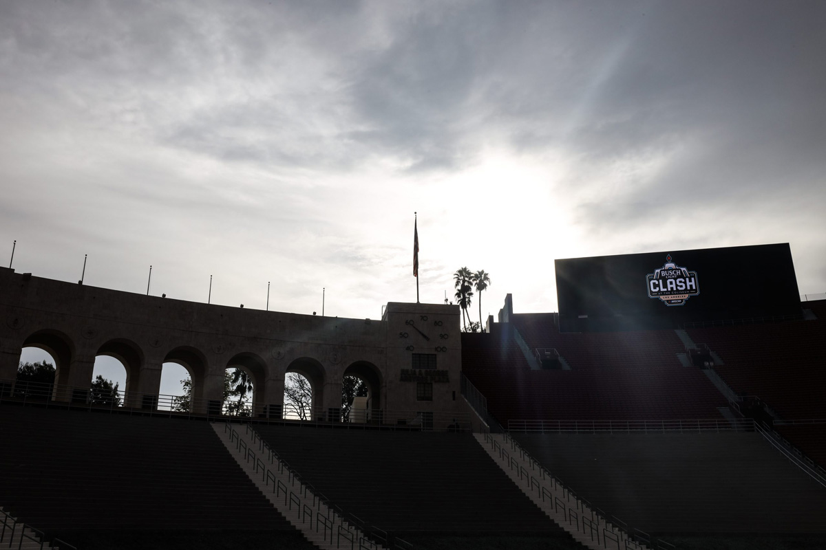 Check out progress on the quarter-mile oval at the Los Angeles Memorial Coliseum, ahead of the NASCAR Cup Series’ 2022 Busch Light Clash at the Coliseum on February 6 (local time).