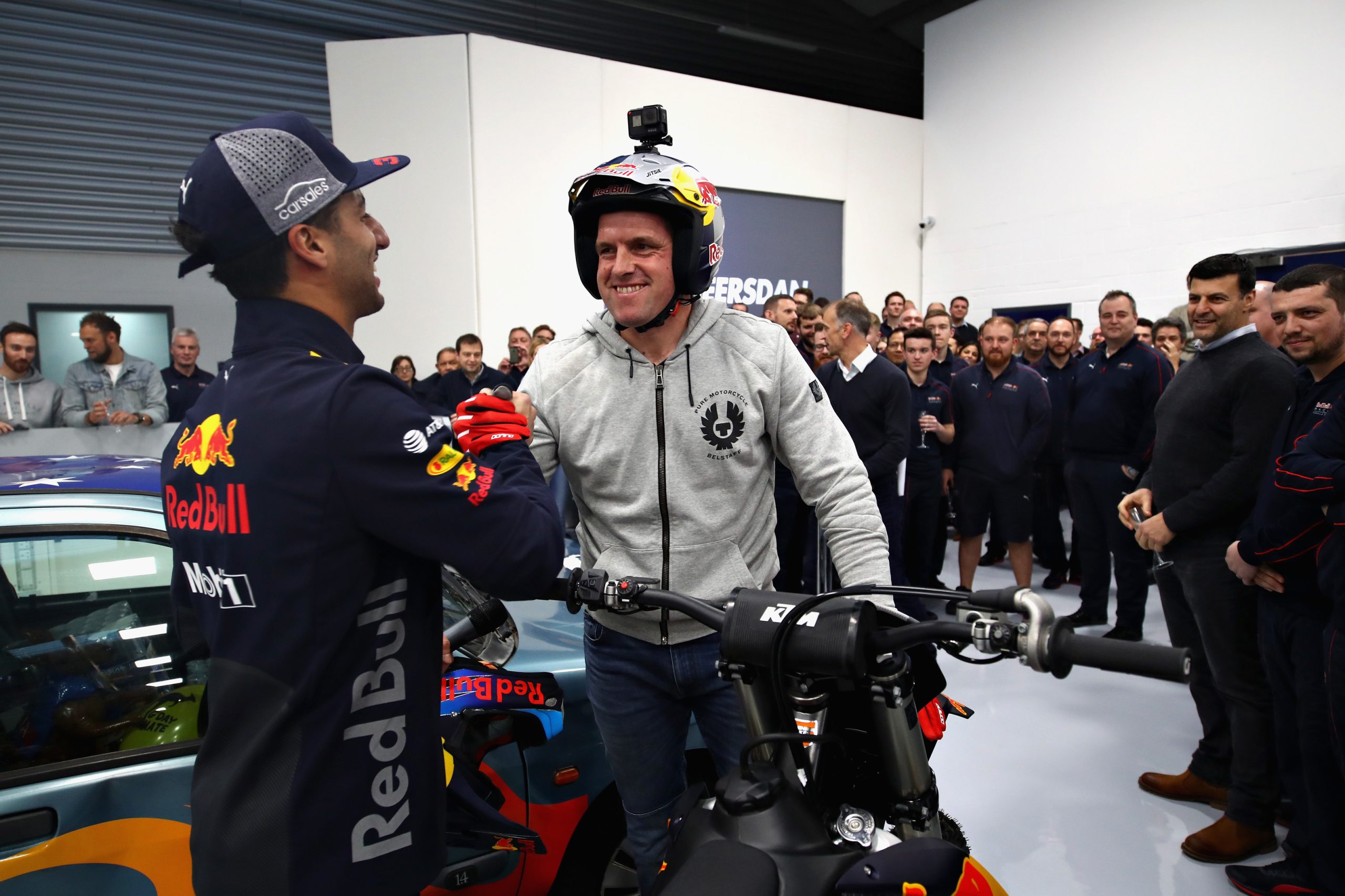 The day included Ricciardo and Max Verstappen riding through the factory on drift bikes, the standard debrief, a signing session, ‘#CheersDan’ video, and the Australian being presented with a parting gift of a KTM 350 SXF by renowned trials rider Dougie Lampkin.