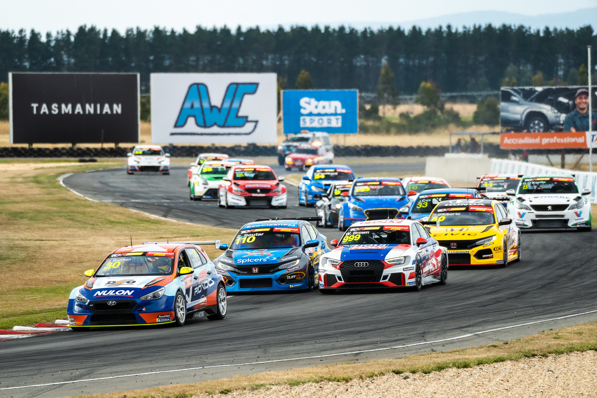 Images from the Supercheap Auto TCR Australia Series, S5000 Australian Drivers’ Championship, and Turtle Wax Trans Am Series on the Sunday of AWC Race Tasmania.