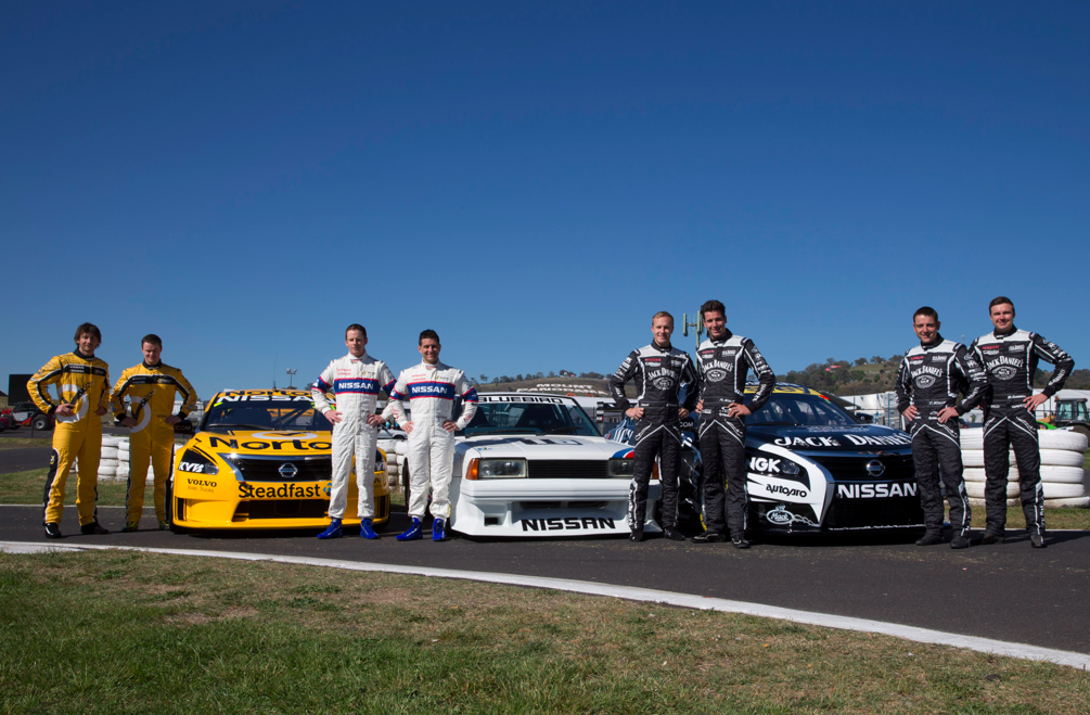 Johnson flanked by drivers Chaz Mostert and Dale Wood
