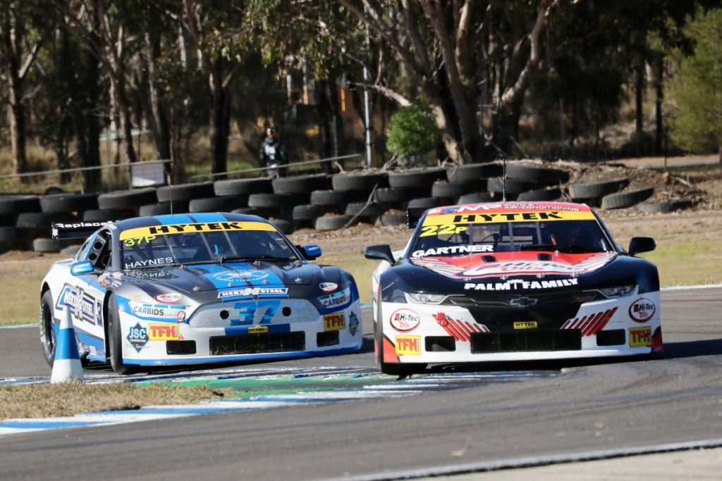 Josh Haynes (Ford Mustang) chased Gartner for much of Race 2 and glimpsed the lead for a short period. A couple of laps from the end though, Haynes had a tyre blowout adjacent the pit entrance. He was able to enter the pits, but a wheel change could not be done in time to be classified a finisher.