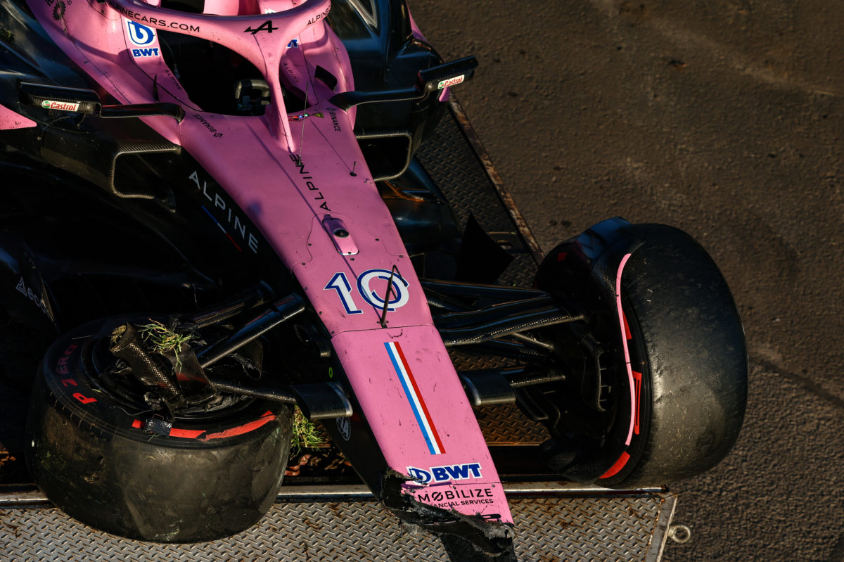 As Gasly moved across the track, he inadvertently squeezed team-mate Esteban Ocon into the concrete wall, the resulting contact between the right rear of Gasly’s car and the left-front of Ocon’s car also tipping Gasly’s Alpine into the same wall, ending the race for both drivers.